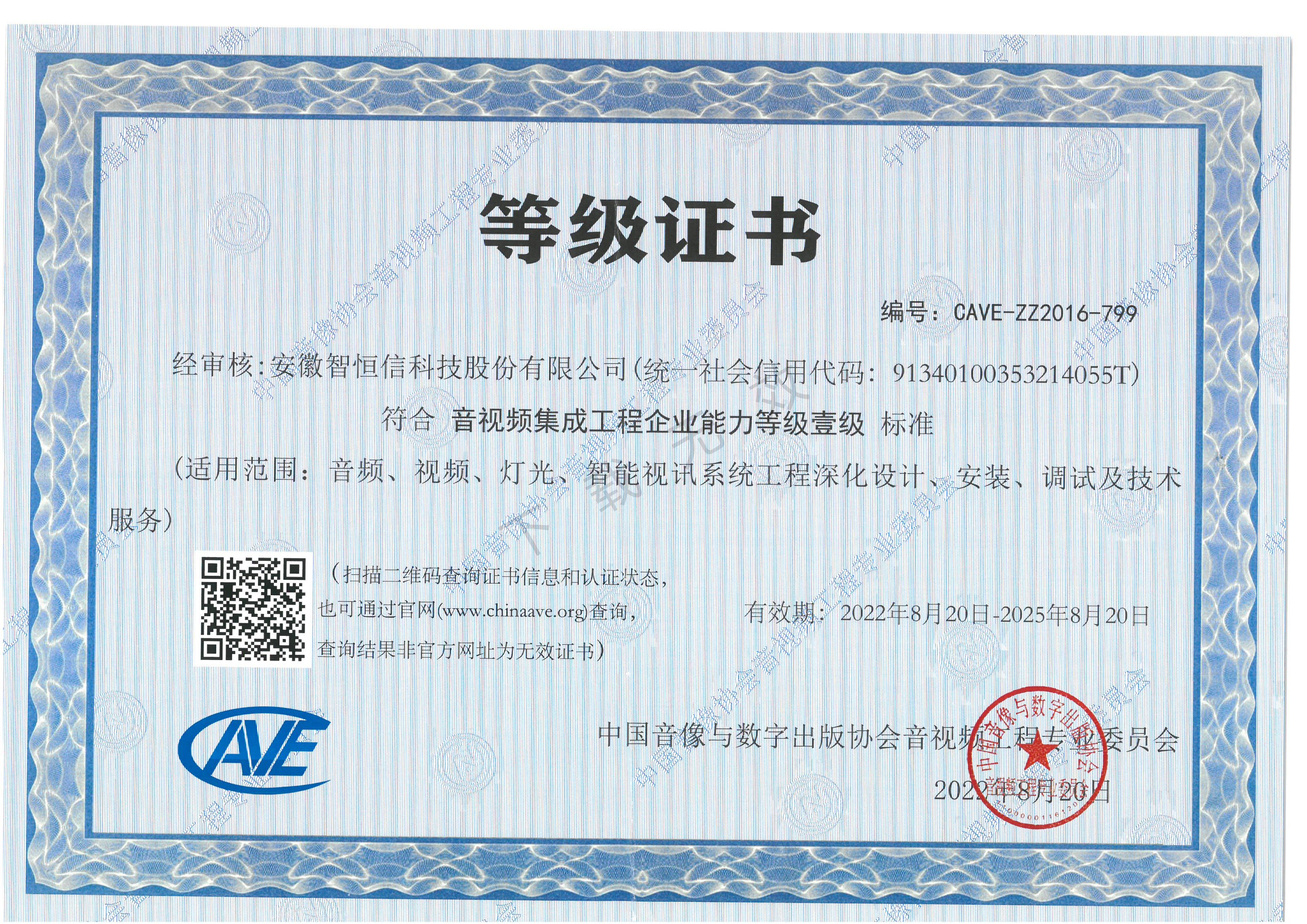 音视频集成工程企业一级资质证书